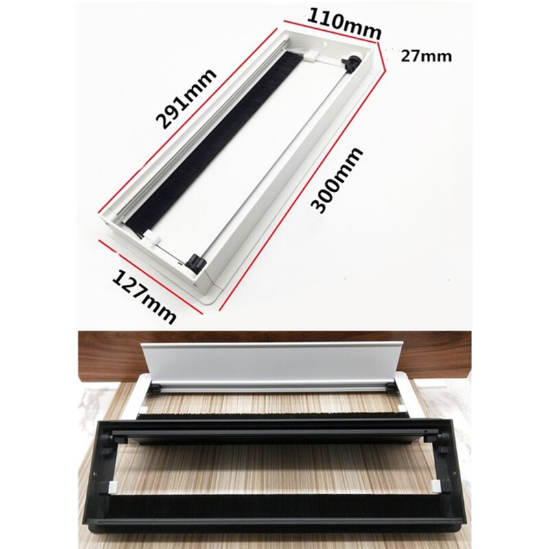 W127*H300-400 mm Rectangle Aluminum Table TV Cabinet Desk Wire Cable Tap Grommet Soft Quiet buffering Flap Cover Brush