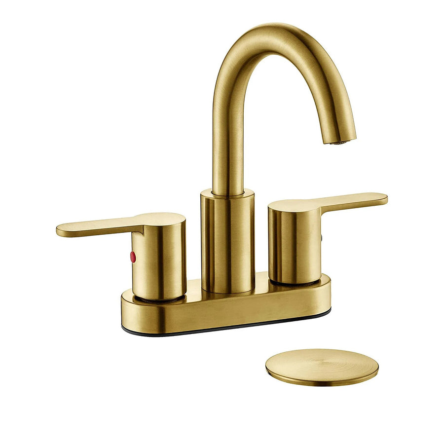 Brushed gold 4 inch wide spread bathroom faucet