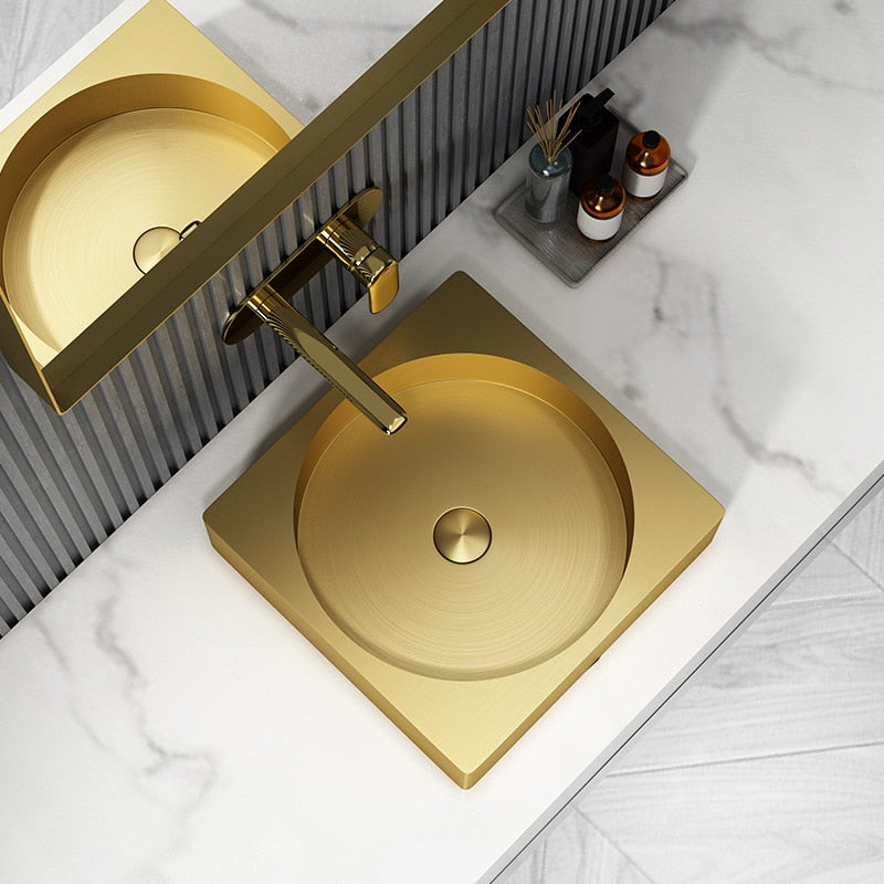 Artistic SUS304 Stainless steel Square Bathroom sink High Quality 410*410*130mm Washbasin Hand basin Brushed Gold Luxury Lavabo