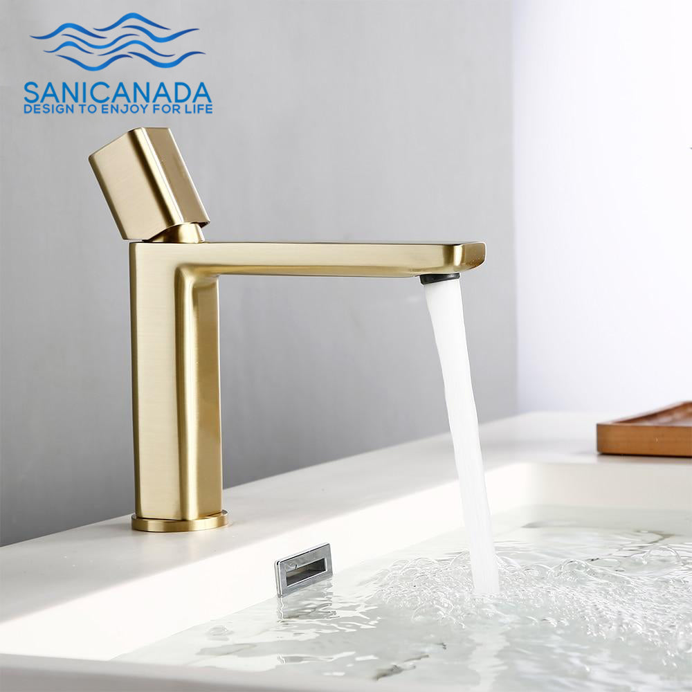 Brushed Gold-White- Chrome Single Hole Bathroom Lavatory Faucet