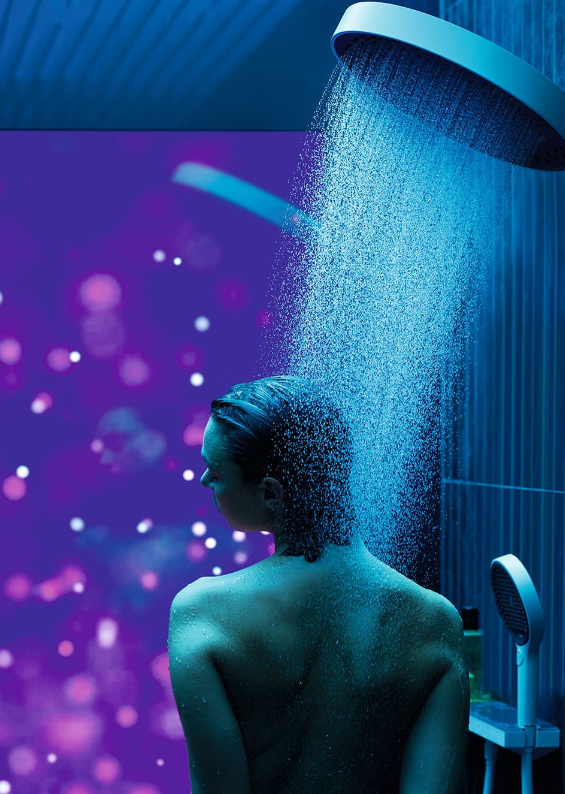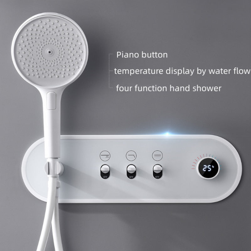 Brass shower mixer with glass front plate and plastic box cover brass core inside