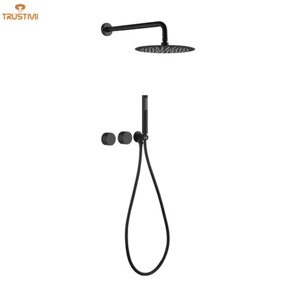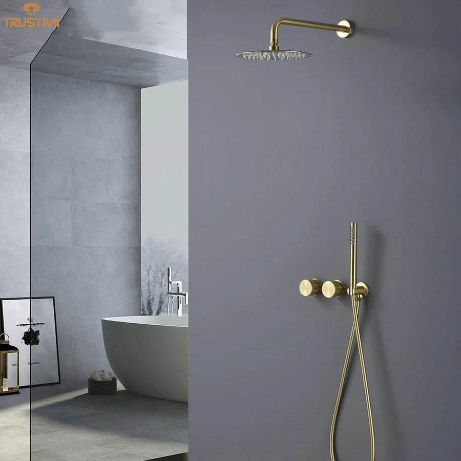 Rain Shower Faucet System Set Bathroom Brushed Gold Bath Mixer Tap Black Gunmetal Brass Diverter Hand Held 10" Head Wall Arm Kit