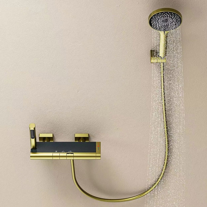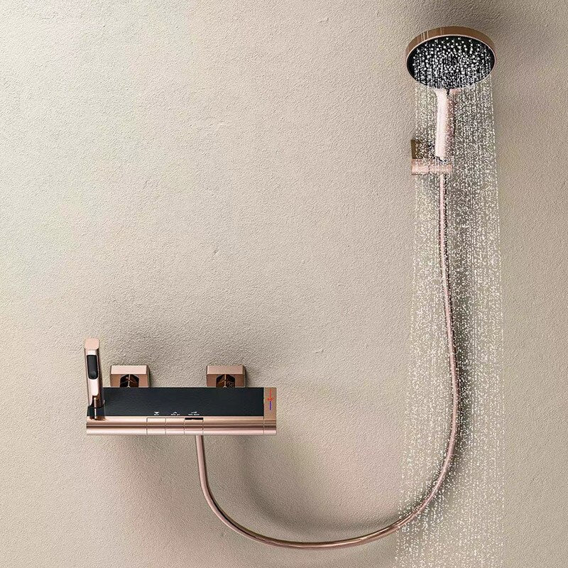 Wall mounted digital show thermostatic shower faucet set brass rose gold