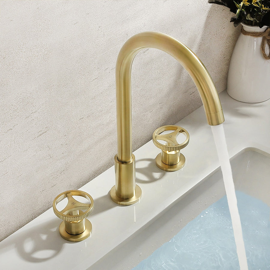 New Sink Faucet bathroom hot and cold brass Brush gold Widespread basin faucet