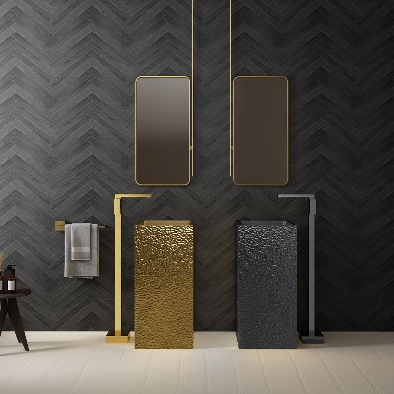 Nordic Square Design Brushed Gold-Black Gun Hand made hammered pedestal sink