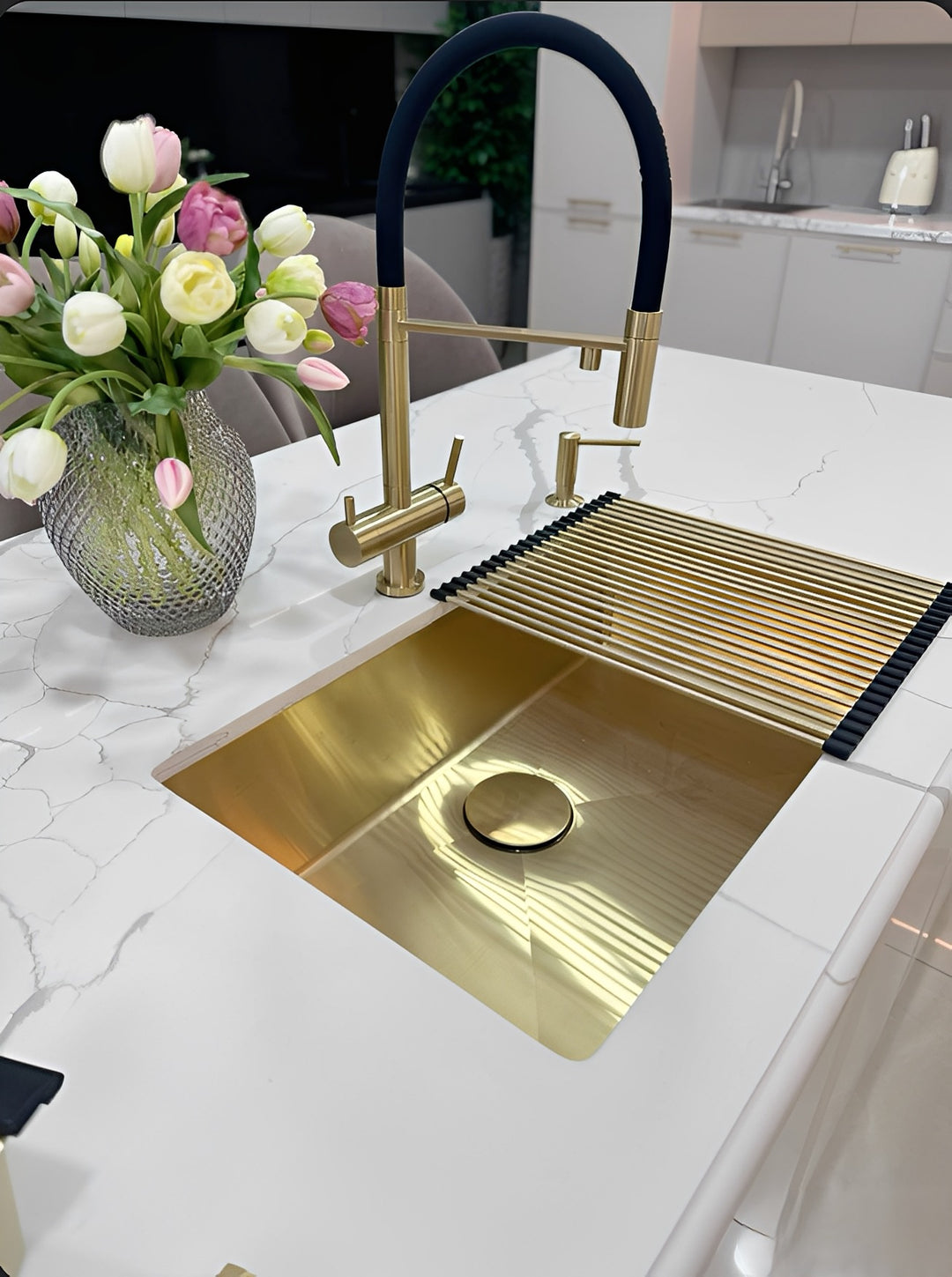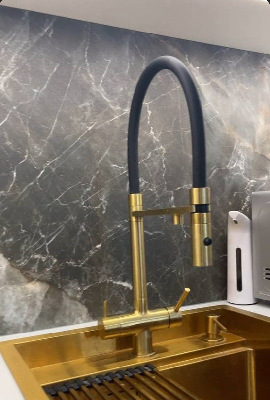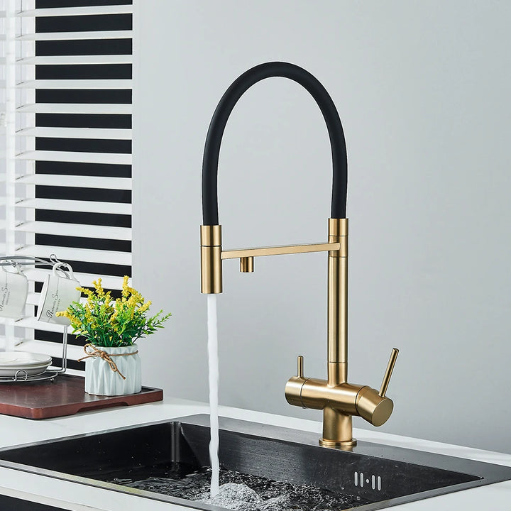 Brazilia 2.0 -Brushed Gold 3 Way Deck Mounted Kitchen Mixer Tap 360 Rotate Drinking Sink Tap Water Purification Tap Crane For Kitche