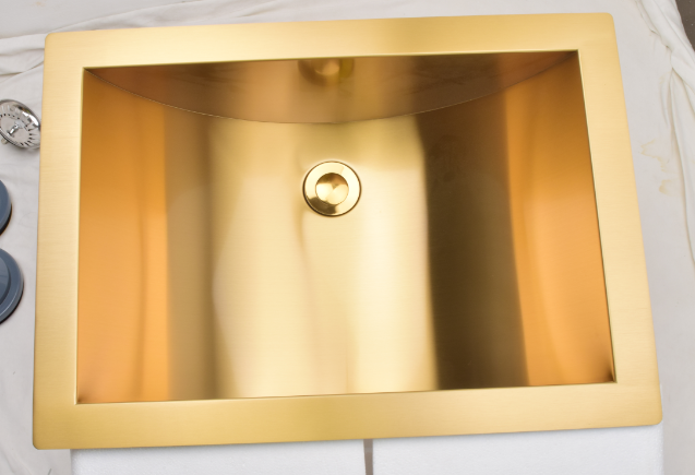 Brushed Gold Rectangular 16 gauge Stainless Steel Undermount Bathroom sink