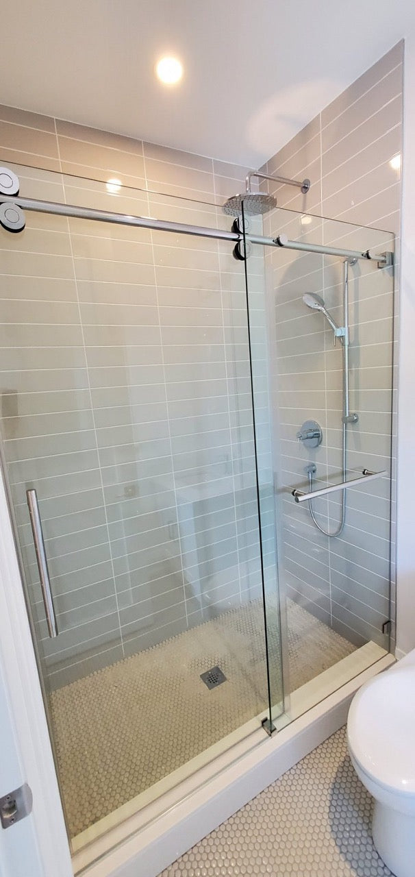 Chrome Frameless Slide Roller Shower Glass Door with Towel Bar 10mm size 60" X 76"