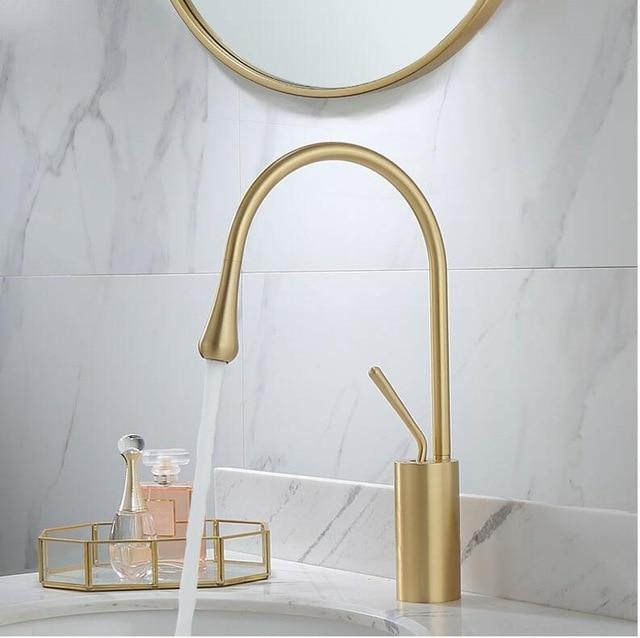 Brushed Gold-Black-White Tall Vessel Basin Bathroom Faucet