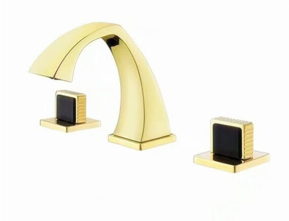 Milano-Gold polished brass with black handle 8" inch wide spread bathroom faucet