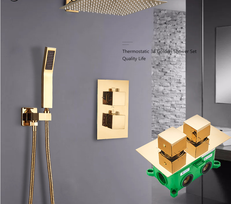 Golden Thermostatic Shower Faucet Set Bathroom Rainfall Shower Head Hot Cold Mixer Shower Systems Waterfall Bath Tub Mixer Tap