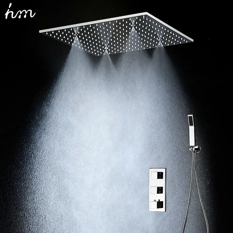 hm High Quality Thermostatic Shower System Set 20Inch Square Ceilling Massage Misty Rainfall Shower Head Faucet Chrome Polished