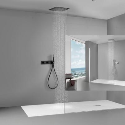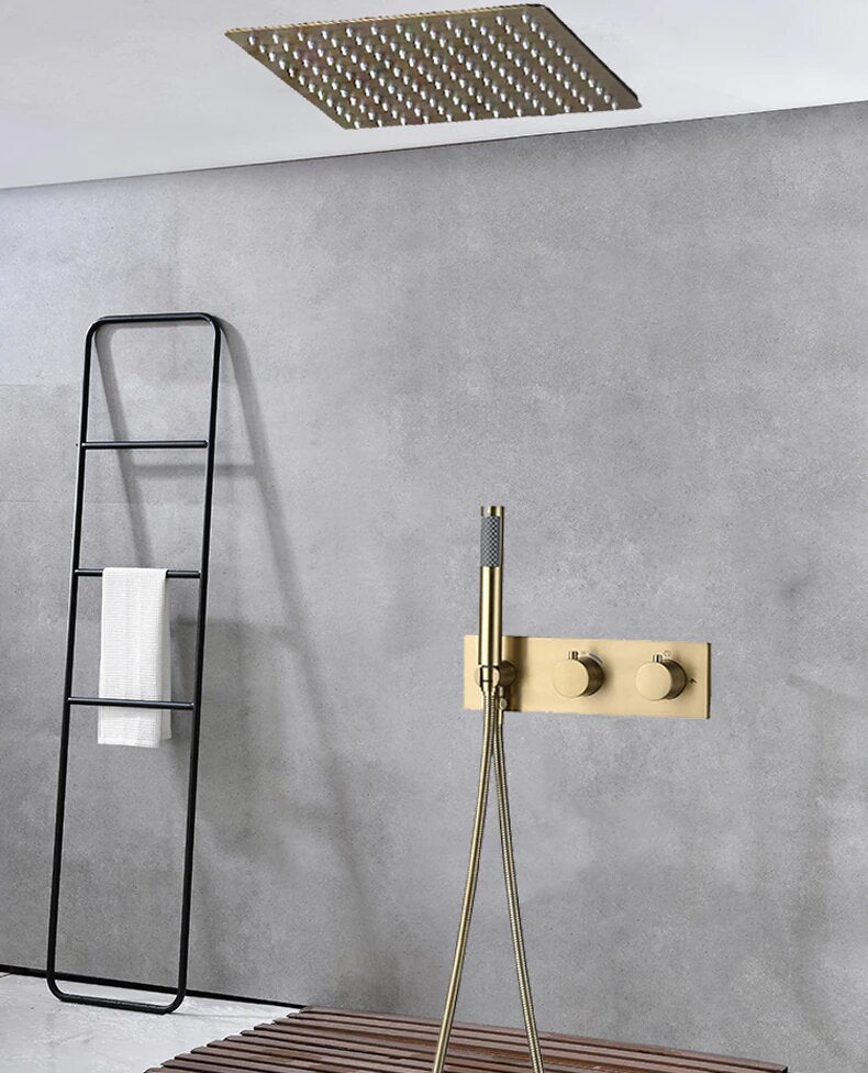 Brushed gold-Metal Grey 12"x12" Ceiling Flush Mount 2 Way Diverter Shower Kit