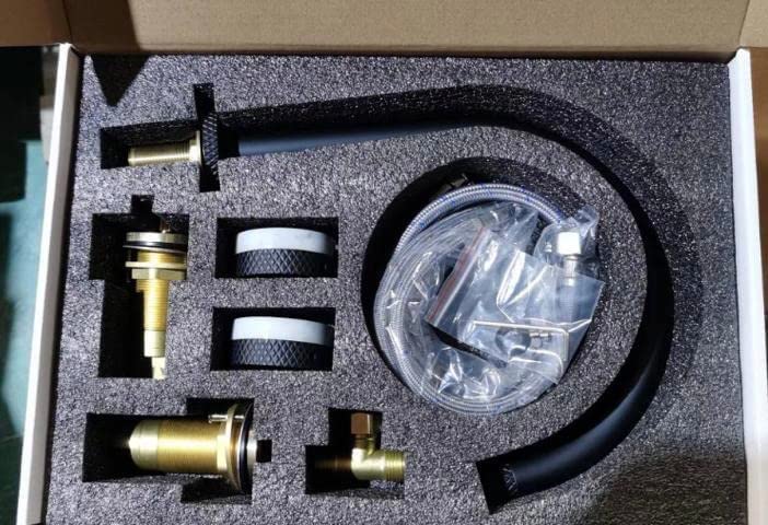 Luxury Brass Modern Widespread 3-Hole Bathroom Basin Faucet in Brushed Brass with Black Marble Knobs for Lavatory Sink High Quality Basin Tap