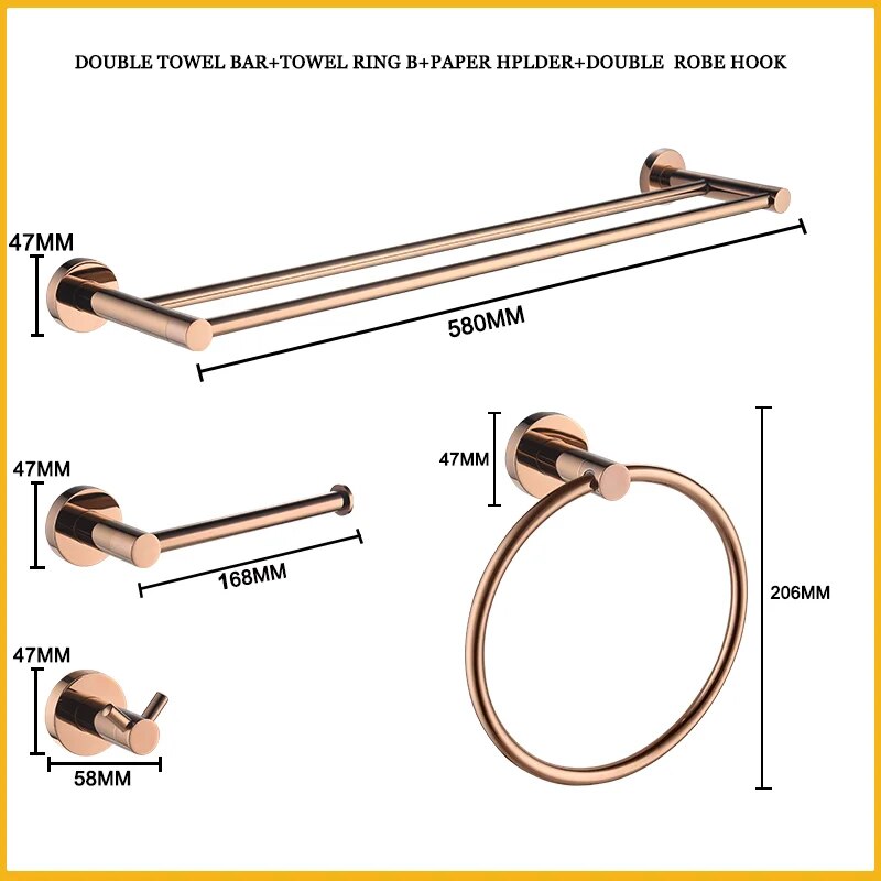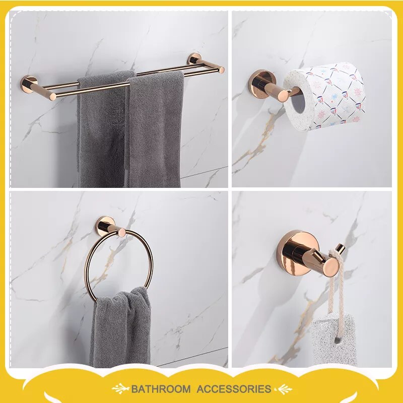 Luxury Stainless Steel Double Towel Bar Towel Rack Robe Hook Tissue Holder Sets Rose Gold Bathroom Accessories Hardware