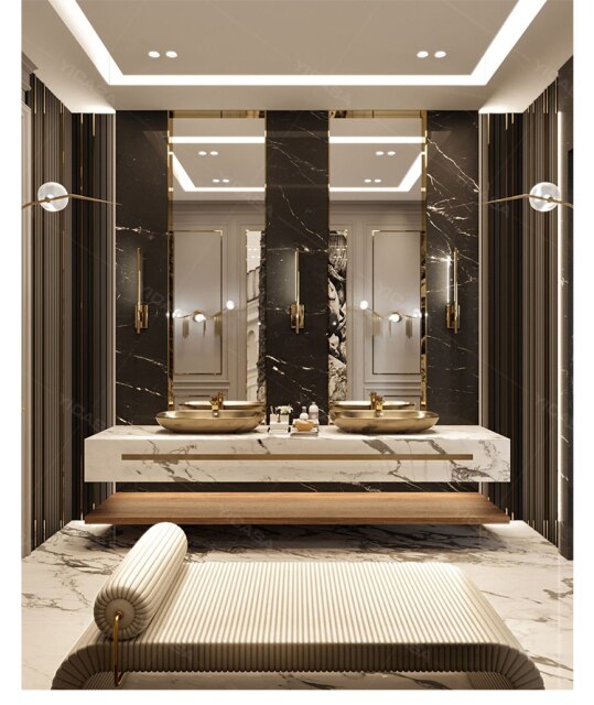 Hermes- Marble exposed bathroom vanity with gold vessel sink combo 60"