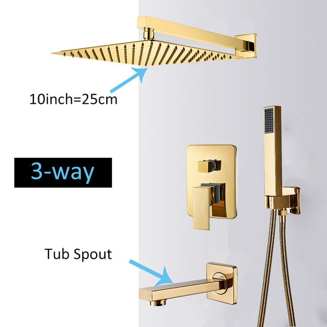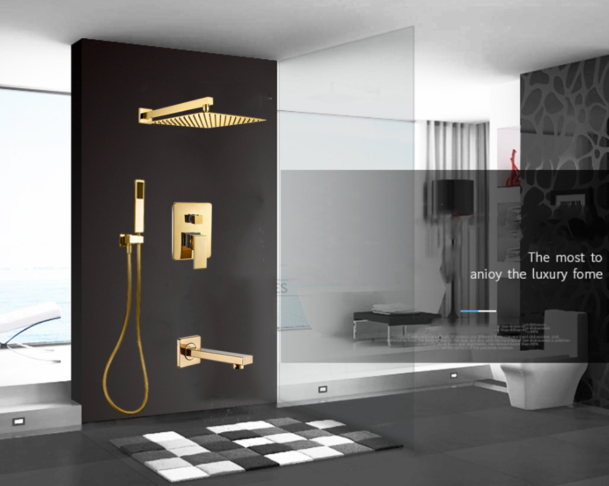 Feature: Golden Rainfall Shower Head With Gold Handshower With Mixer Tap