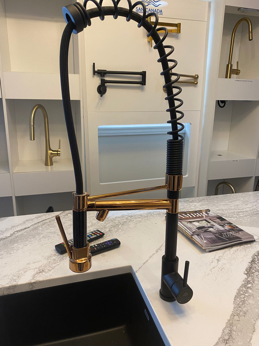 Professional chef kitchen faucet 26 inches tall pull out spring dual spray and pot filler