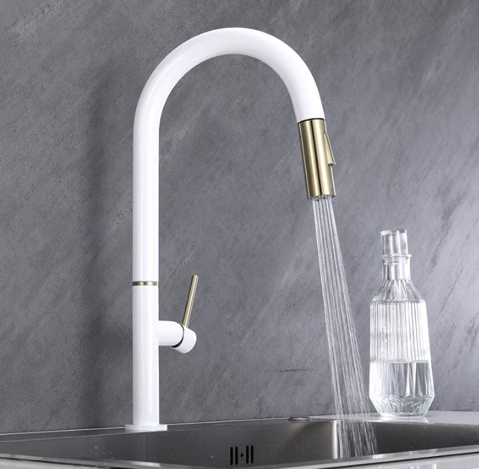 - Single Lever Control: Pull-down sprayer faucet with single lever handle for easy use