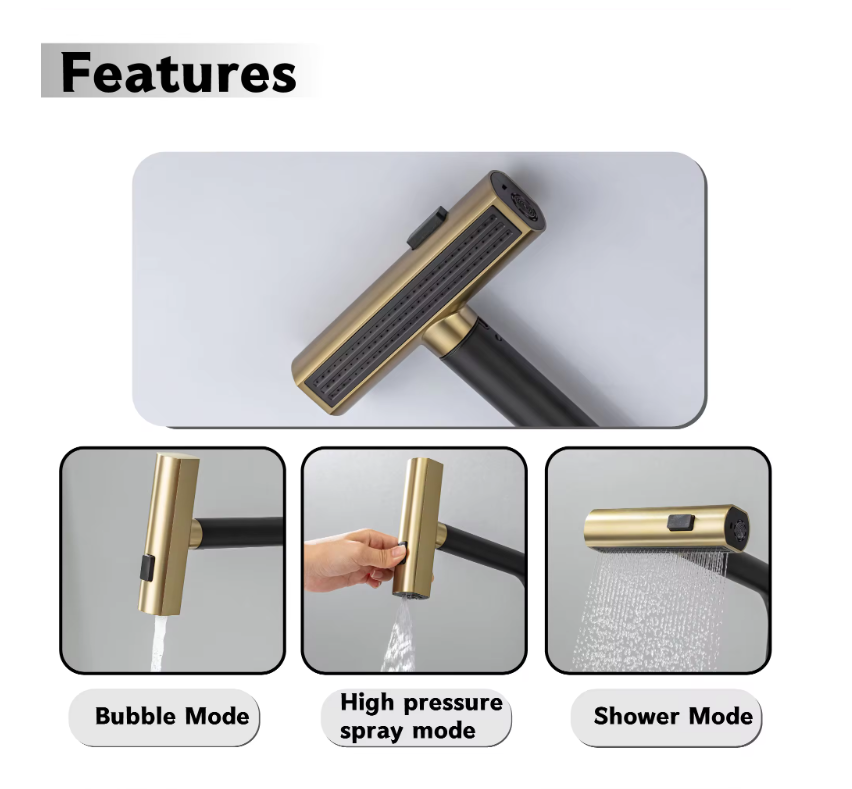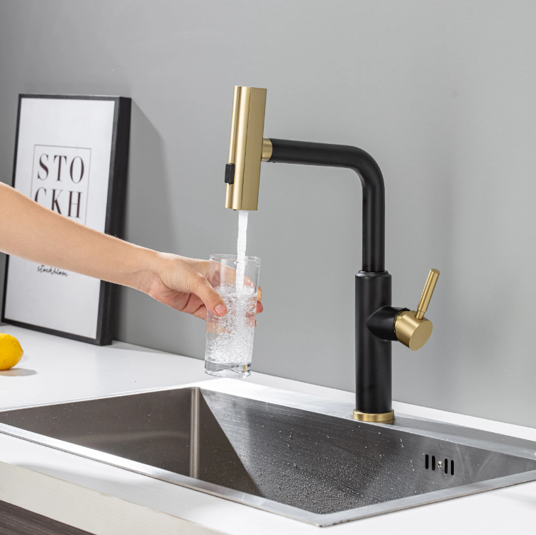 Introducing the Scorpa kitchen faucet—a stunning blend of black and gold with a polished Italian design that brings sophistication to your kitchen. This pull-out faucet features a versatile dual spray function and is expertly crafted from solid brass with durable PVD gold plating by Sani Canada. Elevate your culinary experience and enjoy peace of mind with a generous 5-year warranty, ensuring both style and quality last. Make a bold statement in your kitchen today!