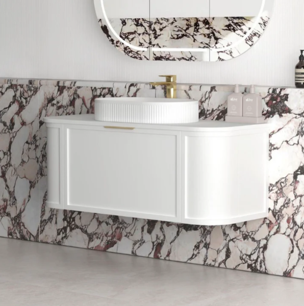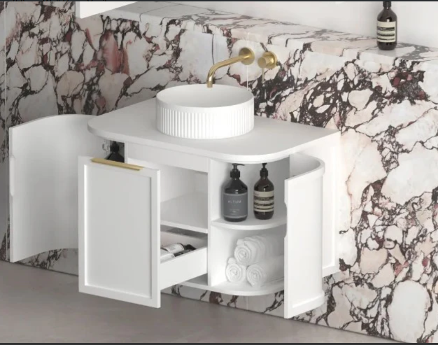 - Mirror Sink and Faucet sold separately ** Curved Edge**: A contemporary design that elevates the style of your bathroom.