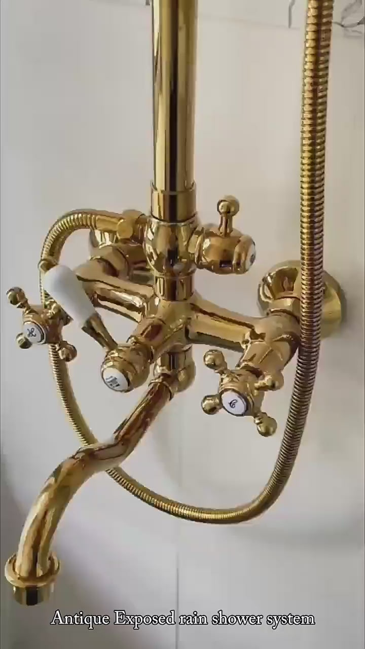 Tuqiu Gold Bathroom Shower Faucet Set Brass Bathroom Rainfall Shower Mixer Tap Brass Bath and Shower Faucet Set
