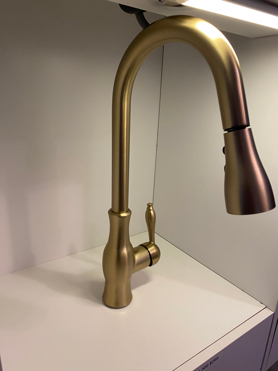 Discover the elegance of Sani Canada's latest Victorian-style brushed gold tall pull-out dual spray faucet, perfect for your kitchen or island. Crafted from solid brass, this stunning faucet not only enhances your space but also comes with a generous 5-year warranty for peace of mind.