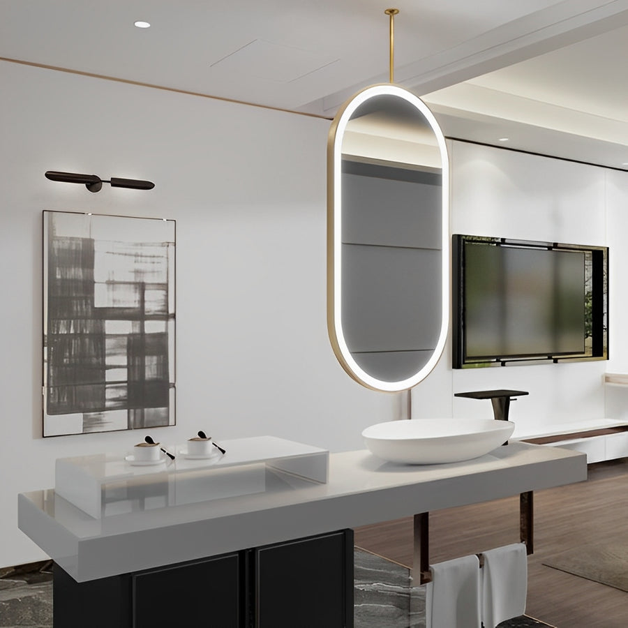 STOCK READY TO SHIP- Brushed Gold-Oval Double Sided Suspended Ceiling Mounted LED Mirrors 30"x42"