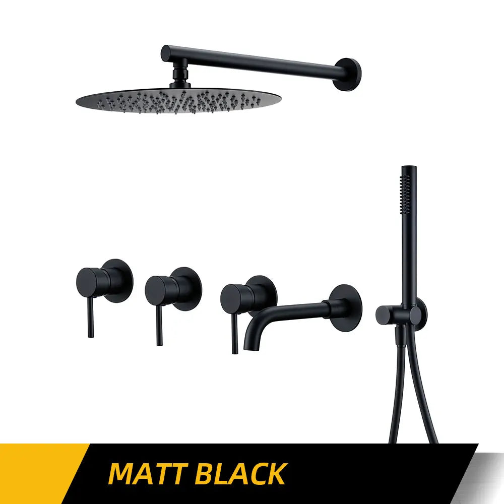 Matte Black 3 Way Seperate Volumen Control shower kit