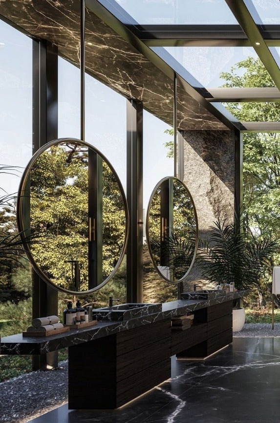 Round Black No LED Celing Mounted Pendant Bathroom Mirror