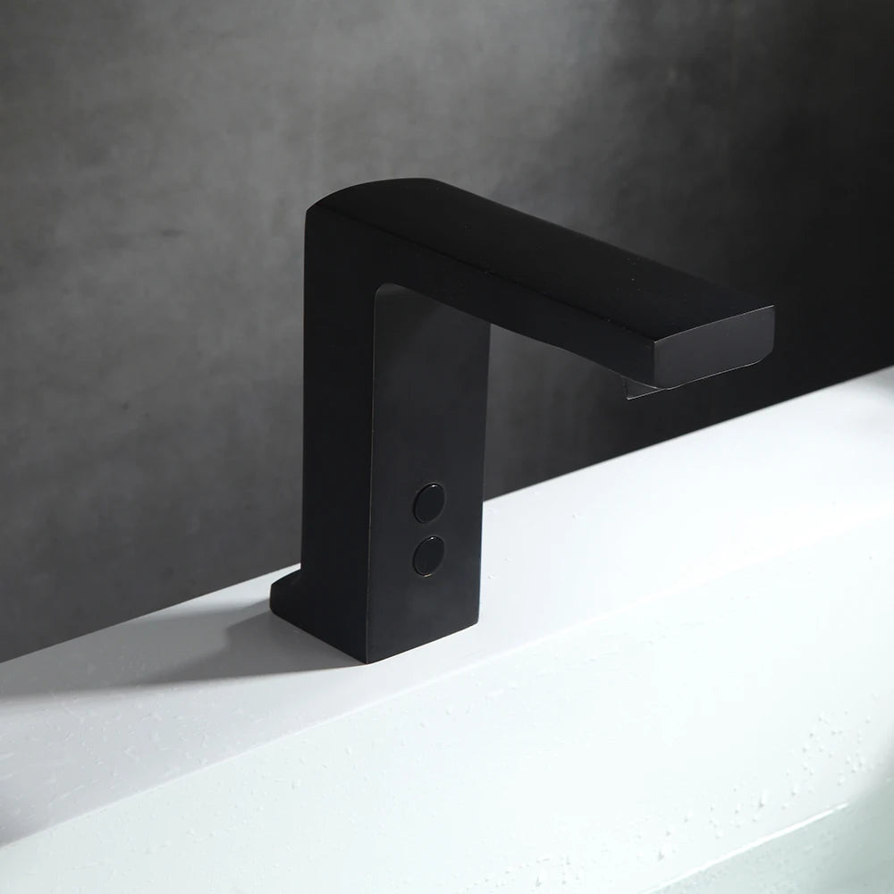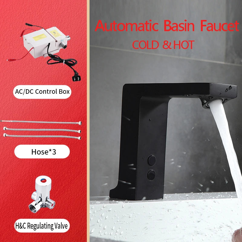Black Negro automatic basin faucet smart taps full body brass copper mixer water cold & hot battery power and ac plug 110 voltage transformer ceramic valve core suitable for bathroom and public area grifos de dutch
