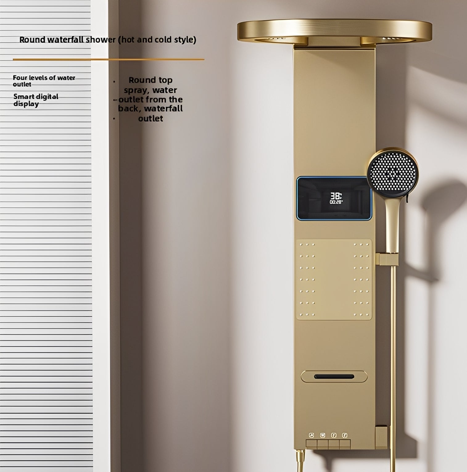 **Why Choose Our Shower Panel?** - **Premium Quality:** Crafted from rust-resistant stainless steel, this panel promises durability and longevity, ensuring it retains its stunning appearance for years to come. - **Versatile 4-in-1 System:** Select from an array of five invigorating shower modes: waterfall, rainfall, powerful massage jets, hand shower, and faucet with an additional hand shower. Tailor your experience to suit your mood! -