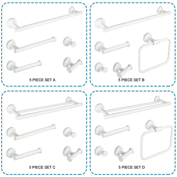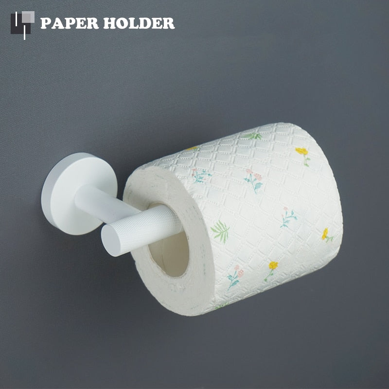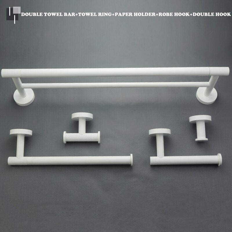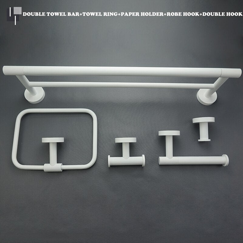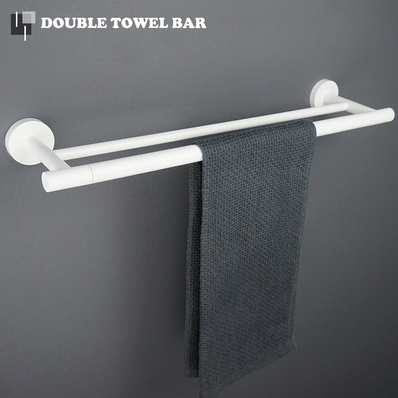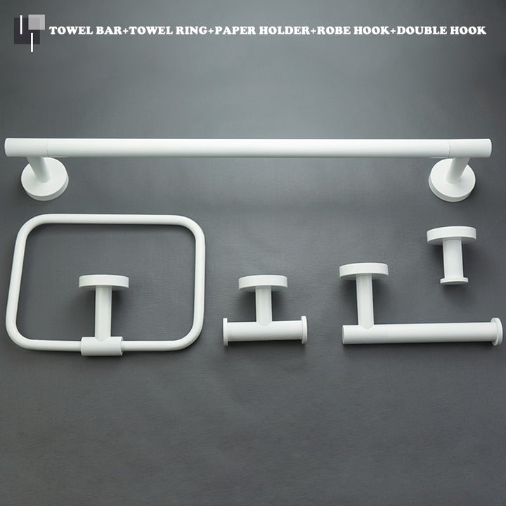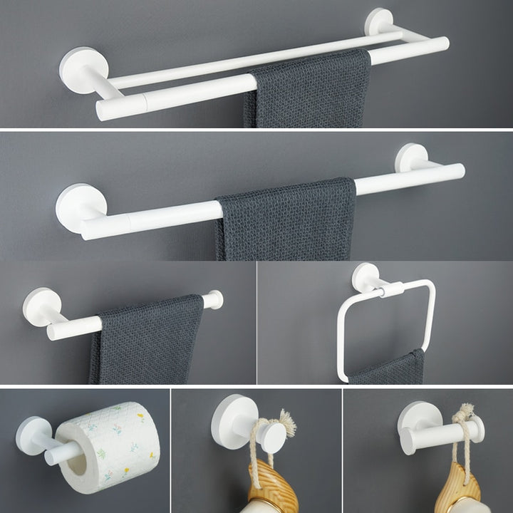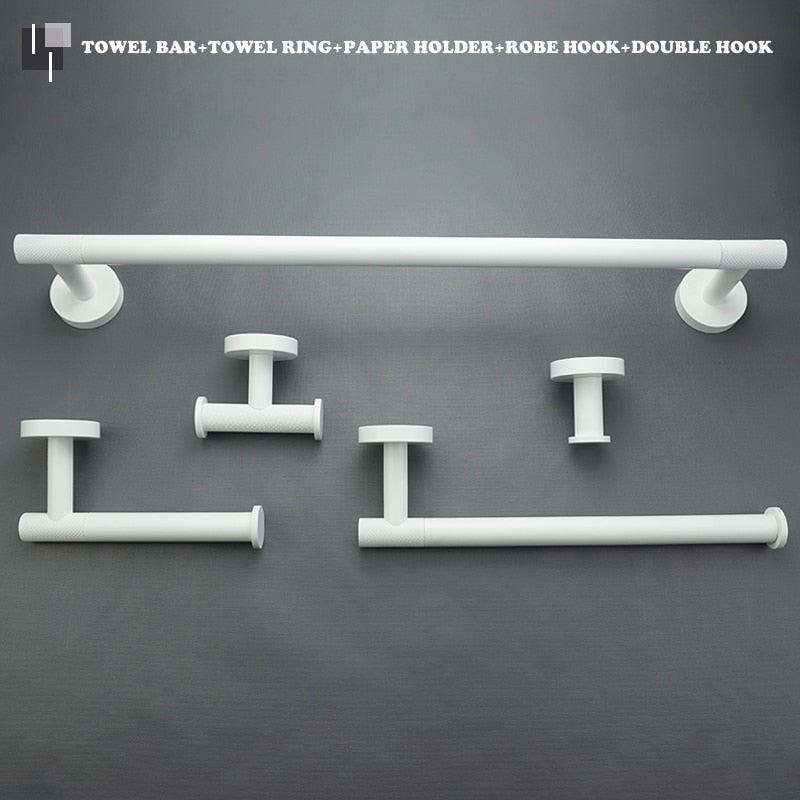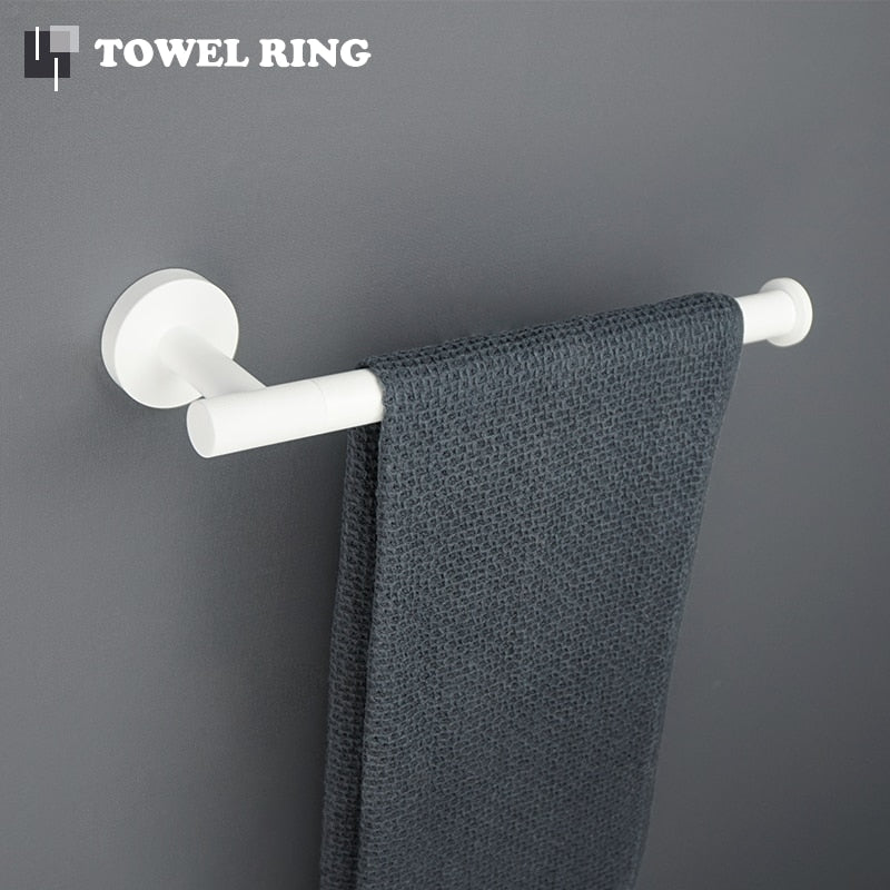 Wall Mounted Stainless Steel White Towel Rack Bathroom Fashion Towel Bar Paper Towel Rack Coat Hook Set